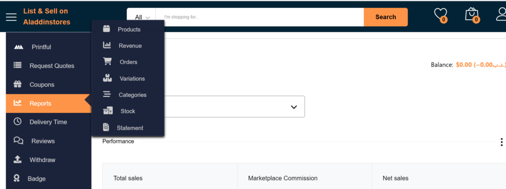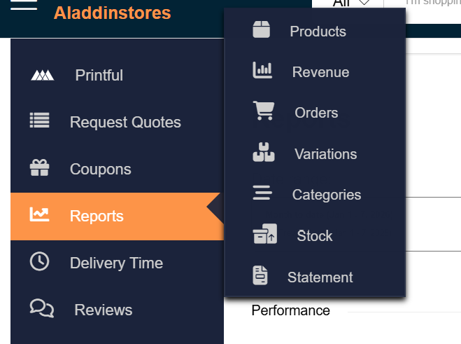 Sellers can access detailed reports from their Seller Dashboard, where they can view clear information about their products, sales performance, and overall store analytics. The Reports section in the AladdinStores Seller Dashboard allows sellers to track performance, analyse sales data, and understand how their store is performing over time. This section is essential for making informed business decisions based on real data.