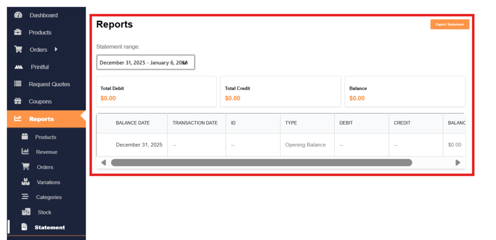 Finally, the Statement report gives you a clear financial summary, showing your balance, credits, and debits. This section is especially useful for tracking earnings, reviewing transactions, and preparing for withdrawals.